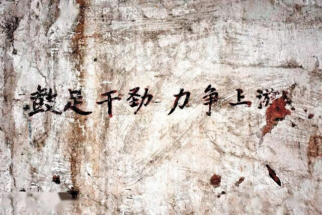 在馬克昌故居墻上發(fā)現(xiàn)的“鼓足干勁 力爭上游”。