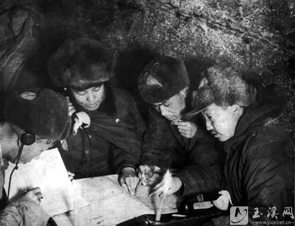 在朝鮮戰(zhàn)場團指揮所中的盧昭(左二)。