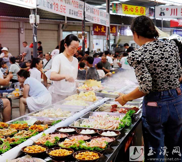 在六一夜市,食客挑選喜愛(ài)的食材。