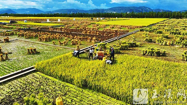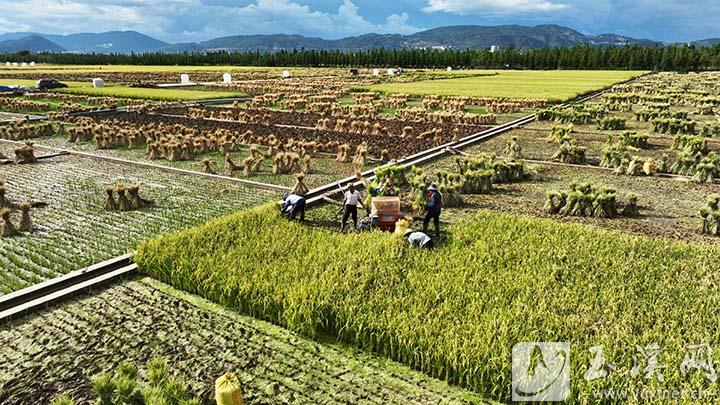 通??h秀山街道六一社區(qū)600畝稻田繪就豐收新畫卷。玉溪市融媒體中心記者 王娟 鄧星瑞 普桂潔 攝