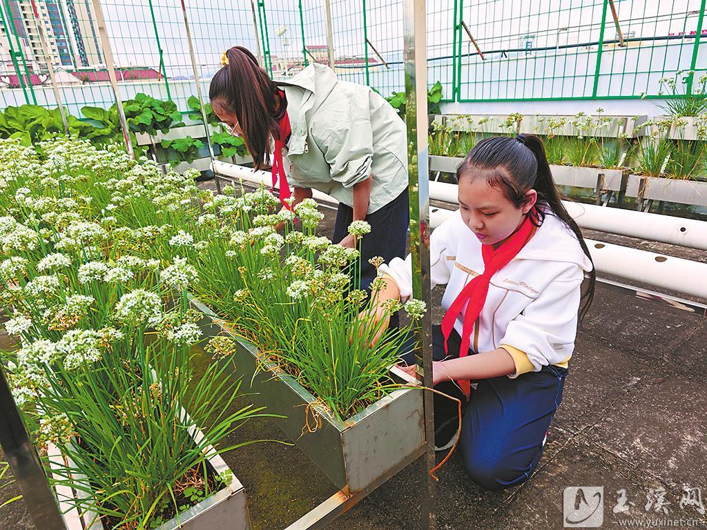 在玉溪市紅塔區(qū)瓦窯中心小學(xué),孩子們利用課余時間到“空中農(nóng)場”參加勞動。