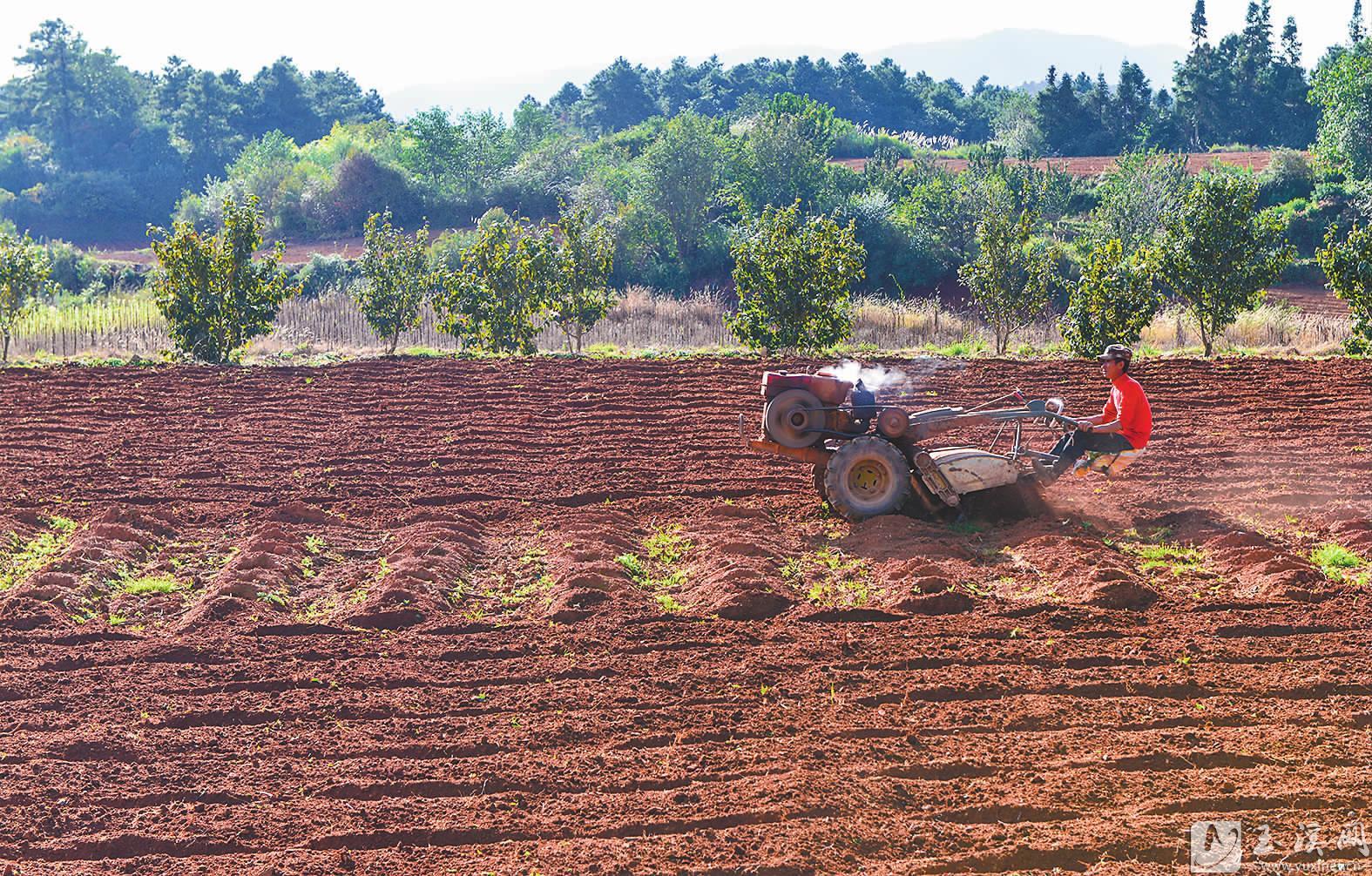 11月15日,在紅塔區(qū)北城街道大石板社區(qū)椒園小組,村民蔡仕強正駕駛拖拉機翻耕煙地,準備種植菜豌豆。北城街道山地占80%,為了增加山區(qū)群眾收入,街道十分重視秋冬農(nóng)業(yè)開發(fā),煙葉采收完后即加強農(nóng)作物種植規(guī)劃,實施農(nóng)技培訓(xùn),加快種植油菜、菜豌豆等秋冬作物,通過輪作土地,減少病蟲害發(fā)生,提高土地利用效率,增加群眾收入。目前已種植秋冬農(nóng)作物近9000畝。玉溪市融媒體中心記者 崔永紅 攝