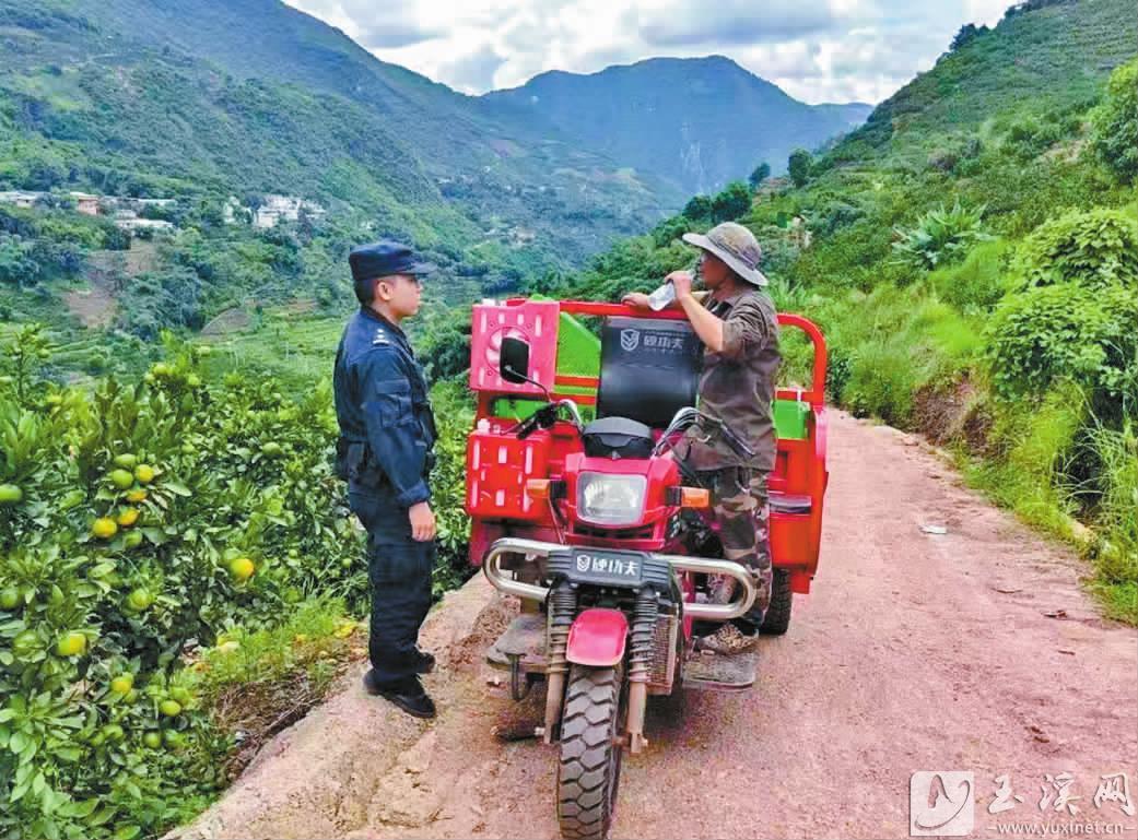 很多果園道路設(shè)施不完善,基本都是機耕路,加上道路崎嶇、路窄坡陡,果農(nóng)使用三輪車作為轉(zhuǎn)運工具存在較大安全隱患。為增強果農(nóng)安全意識,民輔警深入田間地頭,面對面向果農(nóng)宣講交通安全知識。