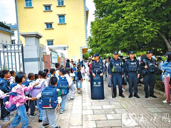 為進(jìn)一步加強(qiáng)校園周邊社會治安管理,努力營造和諧穩(wěn)定的校園環(huán)境,確保師生安全,澄江市公安局常態(tài)化開展護(hù)校安園工作,讓“藏藍(lán)”活躍在校園及周邊,為在校師生筑牢安全屏障。