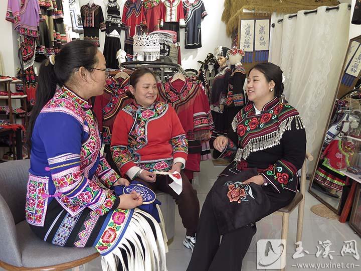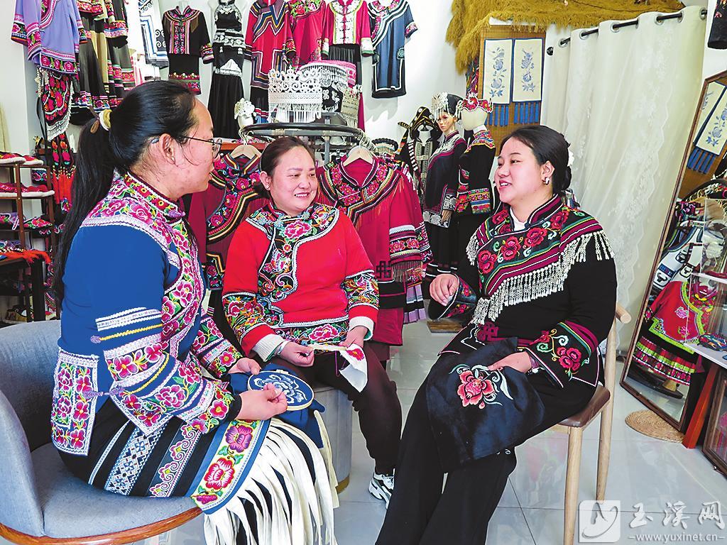 2015年,李興美在易門縣城成立自己的刺繡工作室。起初只是在家接單,她把繡好的作品發(fā)在朋友圈,沒想到訂單源源不斷。一開始在離家近的地方親自送貨,后來學(xué)會了發(fā)快遞,訂單從縣內(nèi)擴展到省內(nèi),甚至還有省外客戶。隨著訂單增多,她開始邀請身邊的全職媽媽一起參與,從最初的三五人到后來的幾十人,工作室逐漸熱鬧起來。2022年,她正式創(chuàng)辦易門針興民族文化傳播有限公司,將工作室升級為集培訓(xùn)、創(chuàng)作、銷售于一體的彝繡傳承基地。