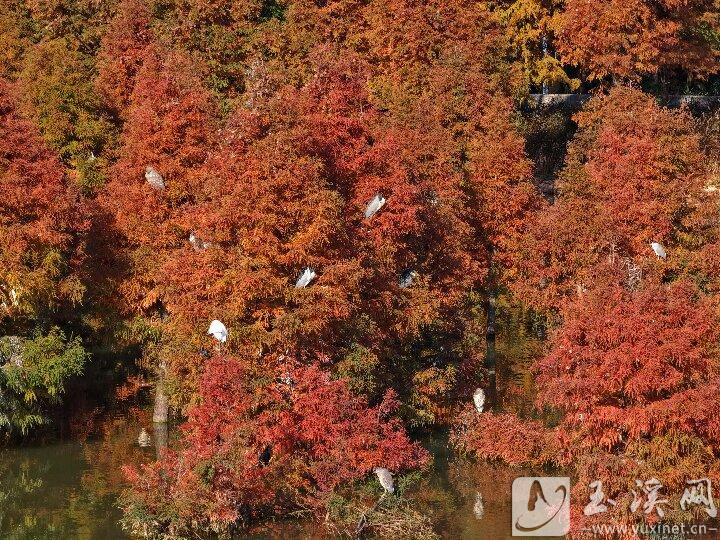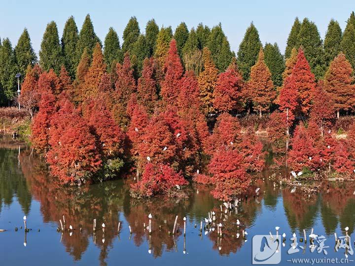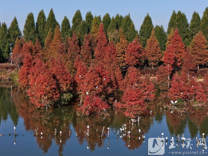 12月2日清晨,星云湖畔十萬余株中山杉挺立水中,層林漸染,紅艷醒目,與碧水藍(lán)天構(gòu)成一幅靜謐詩意的畫卷。這片水上森林不僅是亮麗風(fēng)景,更是江川區(qū)通過生態(tài)修復(fù)工程構(gòu)筑的湖岸生態(tài)屏障,成為水鳥棲息的理想家園,生動(dòng)踐行著“綠水青山就是金山銀山”的發(fā)展理念。(玉溪市融媒體中心記者 鄧星瑞 普桂潔 攝)