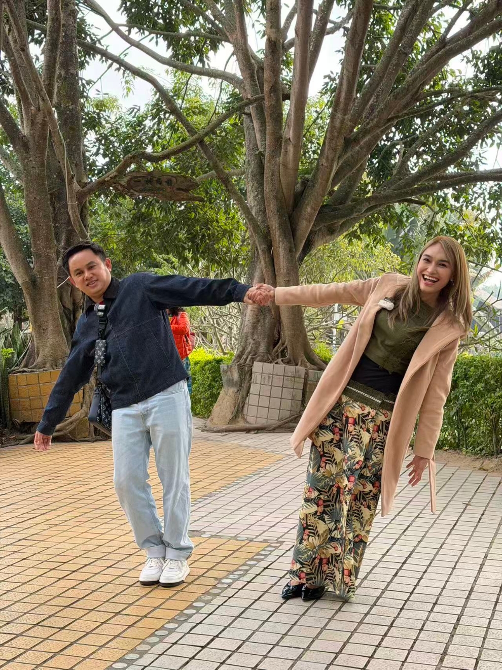 SeinPhyo和Yi在“一樹兩國”景點打卡拍照