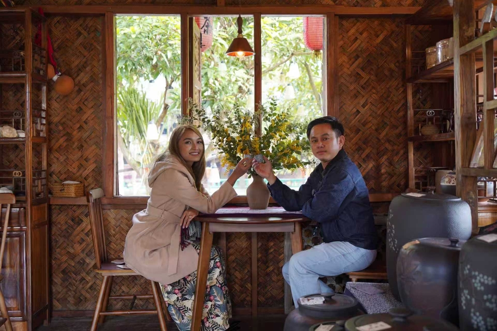 在參觀過程中,這對博主夫婦了解了從一顆種子到一杯好咖啡的完整鏈條。“好咖啡需要‘三位一體’——好生豆、好烘焙、好萃取。”SeinPhyo和Yi邊聽邊記錄,不時提出問題。在品鑒區(qū),他們嘗到了用研究所自種咖啡豆制作的飲品。“口感很均衡,”SeinPhyo評價道,“能嘗出花果香。”Yi則對其中一款帶有紅酒風(fēng)味的豆子特別感興趣。